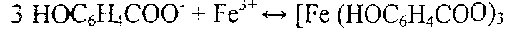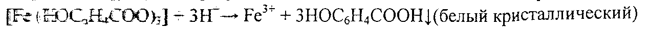 При добавлении небольших количеств разбавленного раствора уксусной кислоты окраска сохраняется, но при подкислении минеральными кислотами раствор обесцвечивается — комплекс разрушается с выделением белого кристаллического осадка свободной салициловой кислоты: