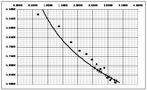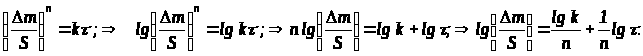 2.3. Построили график lg Δm/S=f(lg τ) (рис. 3), определили коэффициенты логарифмического уравнения и выразили через них закон роста оксидных пленок: