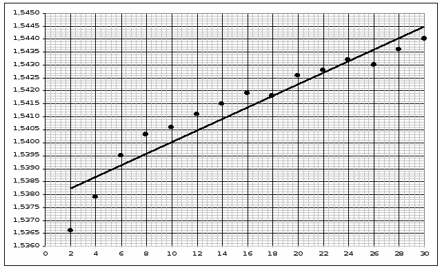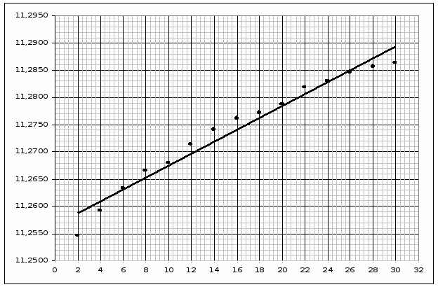2.2. Результаты измерений пунктов 1.3-1.4 занесли в таблицу 1. По данной таблице построили графики для определения первоначальной массы образца (рис. 2).