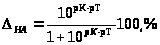 где V1 и V2 - объемы анализируемого раствора до и после титрования; с - молярная концентрация эквивалента вещества анализируемого раствора; рК - показатель константы диссоциации слабого электролита; рТ - показатель титрования индикатора; V1/V2=2, если концентрации титранта и анализируемого раствора равны.