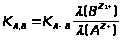 Селективность электрода относительно определяемого иона А в присутствии постороннего иона В характеризуется величиной КА, В. Если КА, В<1, то электрод селективен относительно иона А, а если КА, В >1, то относительно иона В. Для определения КА, В измеряют ЕМ в растворах с постоянным содержанием В и уменьшаемым А. При каком-то минимальном значении ра(А) линейный характер зависимости Е = f(ра(A)) нарушается (рис. 3.). Это означает, что потенциал электрода перестает зависеть от а(А), т.е. теряет электродную функцию от А и не отличает ио нов А от В. В точке пересечения линейных участков ЕА= ЕВ и при ZA = ZB: а(A) /а(B) = KA,B. Чем меньше КА, В, тем выше селективность электрода относительно иона А.