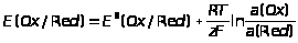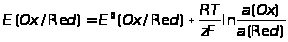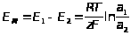 Нернстом была получена формула, связывающая разность внутренних потенциалов ДЭС с активностями (концентрациями) частиц, участвующих в обратимом редоксипереходе: