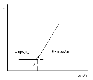 Рис. 3. Определение селективности электрода относительно вещества А по зависимости Е = f(ра (A)).