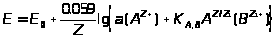 При нормальных условиях и переходе от натуральных к десятичным логарифмам предлогарифмический множитель становится равным 0,0591, и формула приобретает вид
