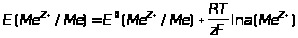 Их электродный потенциал согласно формуле Нернста, с учетом того, что активность твердой фазы при данной температуре равна единице, можно записать так: