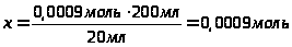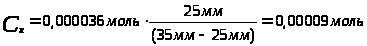 n=c∙V=0,0466 моль/л∙0,04 л=0,0019 моль