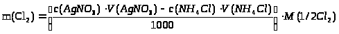 m(Cl>2>)= T>(>>AgNO>>3/>>Cl>>)> ∙ V>(>>AgNO>>3)> = 30 мл ∙ 0,003512 г/мл=0,1054 г.