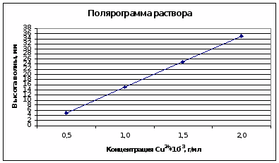 Для определения содержания меди в латуни навеску последней в 0,1435 г растворили и после соответствующей обработки довели объем раствора до 50 мл. При снятии полярограммы полученного раствора высота волны оказалась равной 28 мм. Определите процентное содержание меди в анализируемом образце. Калибровочный график постройте по условию:
