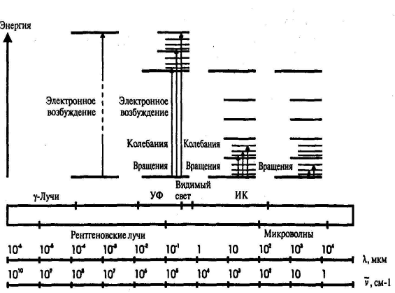 Рис. 6. СХЕМА ЭНЕРГЕТИЧЕСКИХ ПЕРЕХОДОВ В МОЛЕКУЛЕ