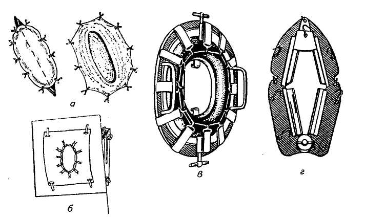 Рис. 6. Различные способы и приспособления для фиксации рубца