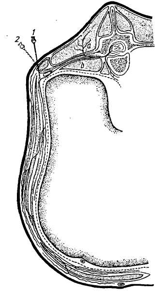 Рис. 3. Иннервация мягкой брюшной стенки коровы: