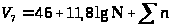 Де: V>N> - рівень шуму від джерела на відстані дБ., V>7> - рівень шуму від джерела дБ., X>1> - зниження шуму внаслідок поширення звукових хвиль в атмосфері, X>2> - зниження шуму під впливом земної поверхні, X>3> - зниження шуму під впливом зелених насаджень, X>4> - поглинаючий ефект будівель (25 дБ).