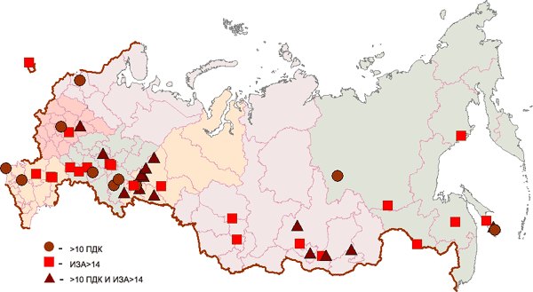 Список городов с катастрофическим уровнем загрязнения атмосферного воздуха в России увеличивается ежегодно, но многие годы в нем числятся Братск, Екатеринбург, Кемерово, Красноярск, Липецк, Магнитогорск, Москва, Нижний Тагил, Новокузнецк, Новосибирск, Ростов-на-Дону, Тольятти, Норильск, а также Орск, Новотроицк.