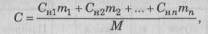 де С>и1>, ..., С>и>>n> - інтегральний ступінь небезпечності окремого пестициду; m - маса окремого пестициду, кг; М - сумарна маса пестицидів, кг (М і m - розраховують за препаратом, для гранульованих - за діючою речовиною); n - кількість пестицидів.