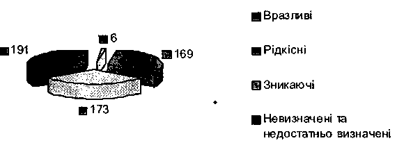 Рис. 2.1. Кількість видів рослин, занесених до Червоної книги