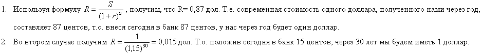 Давайте найдем современную стоимость (R) 1 доллара: