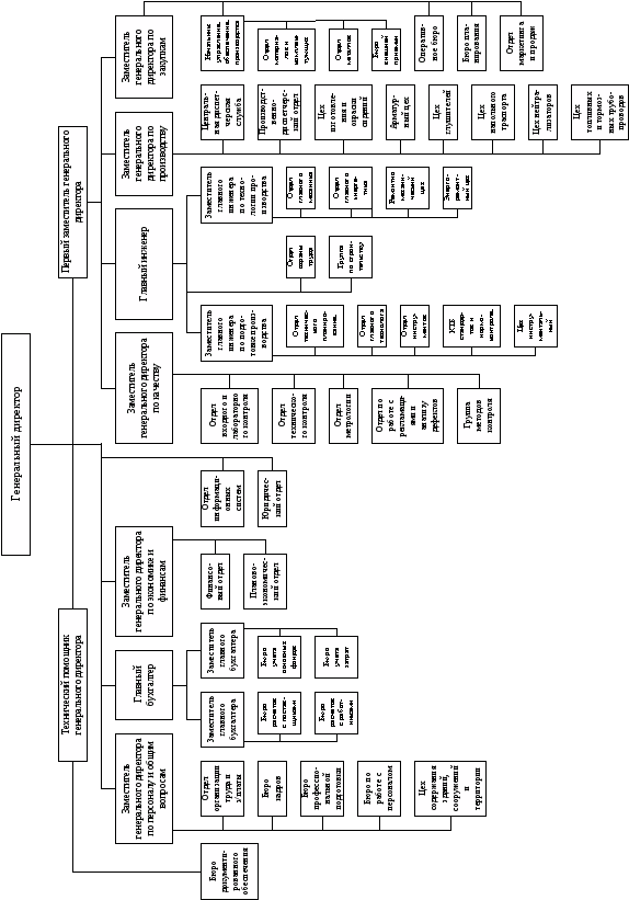 В отличие от производственной структуры общая структура предприятия помимо подразделений, входящих в производственную структуру, включает различные общезаводские службы и хозяйства, в том числе и связанные с культурно-бытовым обслуживанием работников предприятия (жилищно-коммунальное хозяйство, столовые, больницы, поликлиники, стадионы, детские сады и др.).