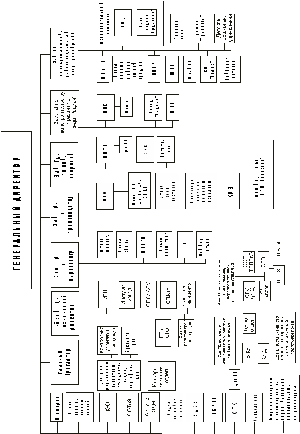 Каждый из заместителей генерального директора выполняет свои обязанности, согласно специфике своей деятельности, и руководит находящимися в его подчинении отделами, цехами, центрами.