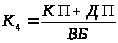 Коэффициент обеспеченности просроченных финансовых обязательств активами рассчитывается как отношение просроченных финансовых обязательств организации (долгосрочных и краткосрочных) к общей стоимости активов. Коэффициент обеспеченности просроченных финансовых обязательств активами (К>4>) на конец отчетного периода рассчитывается по формуле (4) как отношение суммы краткосрочной и долгосрочной просроченной кредиторской задолженности к валюте бухгалтерского баланса: