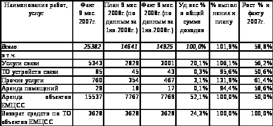 Рост доходов к уровню прошлого года составил 103,3%, в т.ч. по услугам связи составил 115,6% в связи с ростом доходов за 1 квартал 2008г. в сравнении с аналогичным периодом прошлого года по пропуску трафика на 40,3%.