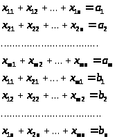 образуют одну строку матрицы перевозок),