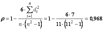 Ступінь тісноти зв’язку між ознаками визначається ранговим коефіцієнтом кореляції Спірмена по формулі: