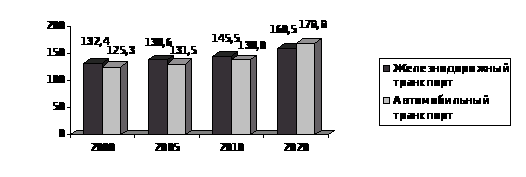 U>2> – увеличение объемов перевозок грузов соответственно росту объемов промышленного производства, создание резервных возможностей для гибкого реагирования на изменение структуры грузовых и пассажирских перевозок в зависимости от конъюнктуры рынка;