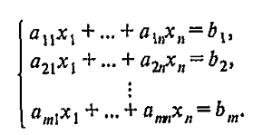 Вектор В = (b>1>, …, b>m>) называется линейной комбинацией векторов A = (a>11>, …, a>m>>1>), …, An = (a>1>>n>, …, a>mn>) той же размерности, если найдутся числа х>1>, ..., х>n> такие, что В = x>1>A>1> + ... + х>n>А>n>. Следовательно, чтобы узнать это, надо решить систему из m линейных алгебраических уравнений (СЛАУ) с n неизвестными: