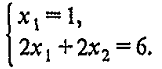 Узнаем, например, является ли вектор F = (1, 6) линейной комбинацией векторов H>1> = (1, 2), H>2> = (0, 2). Получаем совсем простую СЛАУ: