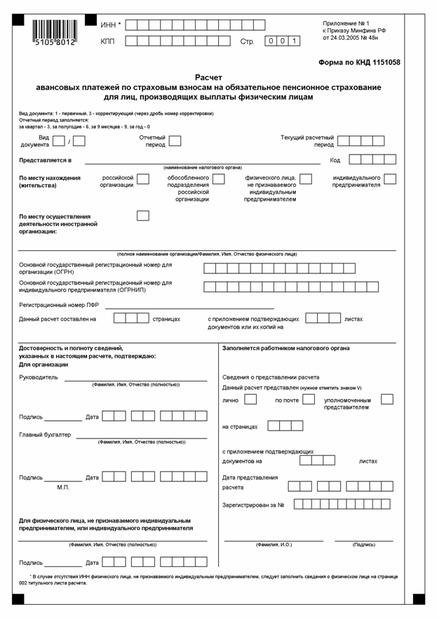Данные об исчисленных и уплаченных суммах авансовых платежей страхователь отражает в расчете, представляемом не позднее 20-го числа месяца, следующего за отчетным, в налоговый орган по форме, утвержденной Министерством финансов Российской Федерации по согласованию с Пенсионным фондом Российской Федерации.
