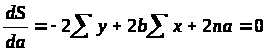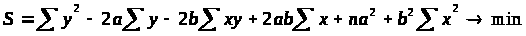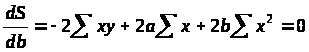 В данном случае у нас a и b – переменные, а х и у – параметры. Для нахождения экстремума функции, возьмем частные производные по a и b и приравняем их к нулю.