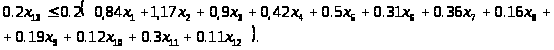 Значение дополнительной переменной x>19 >свидетельствуют о том, что грубые корма содержатся в рационе сверх нижней границы соответственно на 0,9 кг. Значения переменных x>20 >=0> >говорят о невозможности увеличения содержания в рационе грубых кормов. При увеличении содержания грубых кормов на 1 кг стоимость уменьшится на 0.514 руб. Содержание же сочных и концентрированных кормов можно увеличить на 120 г и 2.1 кг соответственно. Корнеклубнеплоды вошли в оптимальный рацион по нижней границе (недефицитный корм), возможно увеличение их количества в рационе на 900 г. Но увеличение содержания в рационе корнеклубнеплодов на 1 кг, приведет к удорожанию рациона на 2,629 рублей. Можно заметить, что дефицитными кормами являются силос травы луговой. При увеличении этого вида корма в соответствующей ему группе произойдет снижение стоимости рациона соответственно на 16 копеек. Картофель используется частично, возможное его увеличение составляет 600 г. Содержание карбамида в общей питательности рациона является дефицитным. При увеличении этого вида корма произойдет снижение стоимости рациона на 13.1 руб.