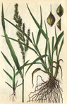 Ежовник обыкновенный (Echinochla crus galli). Как и все поздние яровые сорняки прорастает при достаточном прогревании почвы. В посевах яровой пшеницы медленно развивается и созревает в послеуборочный период. Может сильно разрастаться и образовывать мощный куст высотой 1,5…1,8 м. На одном растение созревает до 12…15 тыс. семян. Оптимальная глубина прорастания 1…2 см. Жизнеспособность семян в почве сохраняется 5 лет и более, в год осыпания зерновки не прорастают (рисунок 5).