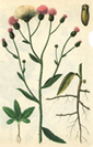 Бодяк полевой (Cirsium arvense). Злостный сорняк (рисунок 7), имеет мощную корневую систему, уходящую в почву до 5 м. На различной глубине от поверхности почвы корень дает горизонтальные ответвления с почками, из которых образуется масса новых побегов. Основное количество почек (до 87%), способных дать надземные побеги, находится на корнях в слое почвы 6…20 см. Кроме того, на одном растении образуется от 5 до 35 тысяч семян. Всхожесть их высокая, жизнеспособность в почве 3…5 лет.