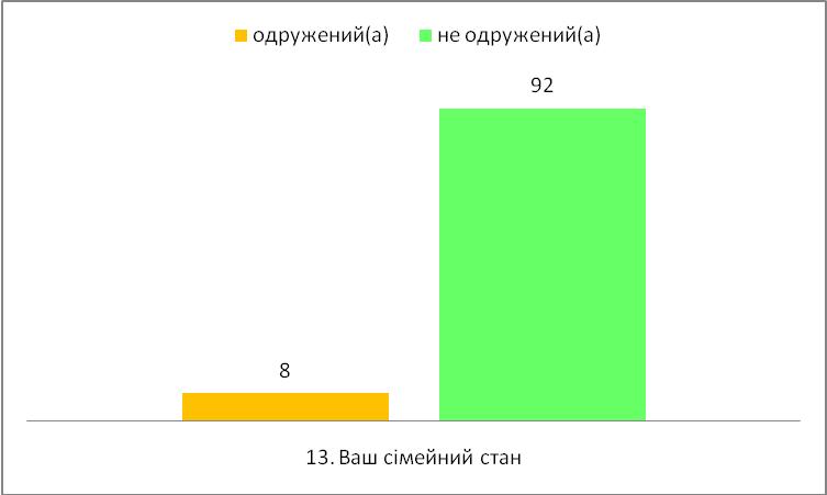 В ході проведеного соціологічного дослідження на тему «Масове безробіття в Україні як соціальна проблема» отримано результати, які дають змогу оцінити сучасні погляди молоді на дану проблему. В опитуванні взяли участь 24 респонденти, які є студентами групи 1ЕС-06 Вінницького національного технічного університету. Серед них 20 осіб - представники чоловічої статі, 4 особи - представниці жіночої статі, віком від 20 до 23 років (20 років - 6 чол., 21 рік і більше - 18 чол.), всі мають незакінчену вищу освіту, 22 чол. неодружені, 2 чол. одружені.
