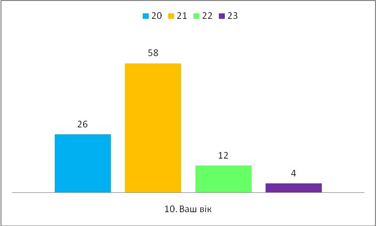 Для проведення соціологічного дослідження в якості респондентів залучаються студенти ВНТУ групи 1ЕС-06 з кількістю респондентів – 24 особи віком від 20 до 23 років незалежно від матеріального та сімейного становища, які на час опитування проживають у місті Вінниця.