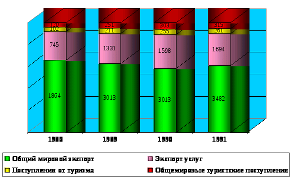8 При построении диаграммы использованы данные, данные, представленные в книге: Папирян Г.А. Международные экономические отношения: Экономика туризма. - М.: Финансы и статистика, 1999. С. 79.