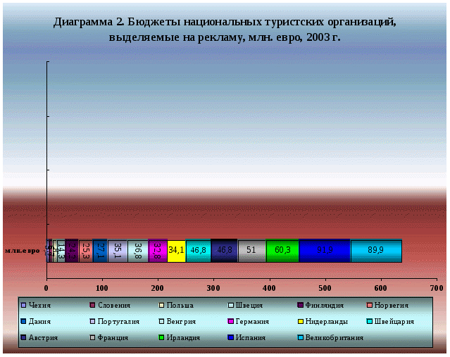 Одной из наиболее значимых тенденций развития мирового туризма является резкое усиление конкуренции на рынке туристического предложения как следствие появления все большего числа растущих стран с амбициозными планами привлечения туристов, а также перенасыщения на рынке однотипного туристского предложения. В результате этого страны, стремящиеся сохранить, либо упрочить свои позиции на международном рынке, осуществляют планирование туризма на основе принципов устойчивого развития, предусматривают долгосрочные инвестиции в данную сферу и имеют четкие государственные стратегии развития туризма. Соответственно, повышается роль государственной политики развития туризма страны в целом, а также целевого продвижения отдельных туристских продуктов на отечественном и международном рынках (диаграмма 2)7