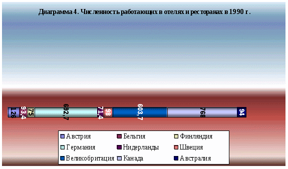 Из диаграммы видно, что наибольшее число занятых в данной сфере в: Канаде (768 тыс. чел.), Германии (692,7 тыс. чел.) и Великобритании (603,7 тыс. чел.).