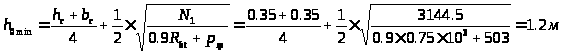 Из конструктивных соображений, учитывая необходимость надежно заанкерить стержни продольной арматоры при жесткой заделке колонны в фундаменте, высоту фундамента рекомендуется также принимать равной не менее