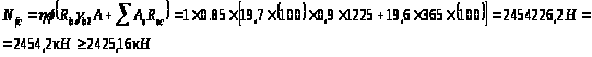 Проверяем прочность фундамента на подавление по поверхности пирамиды, ограниченной плоскостями, проведенными под углом 450 к боковым граням колонны, по формуле СНиП [13]: