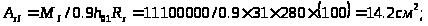 Подсчет потребного количества арматуры в расчетах сечениях фундамента в одном направлении: