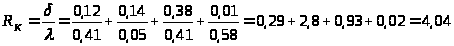 Термическое сопротивление ограждающей конструкции складывается из термических сопротивлений слоёв ограждающей конструкции.