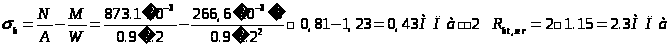 Напряжение по наименее сжатой грани составляет: