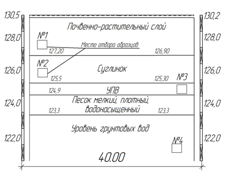 Рельеф участка спокойный с максимальным перепадом высотных отметок 1,4 м.