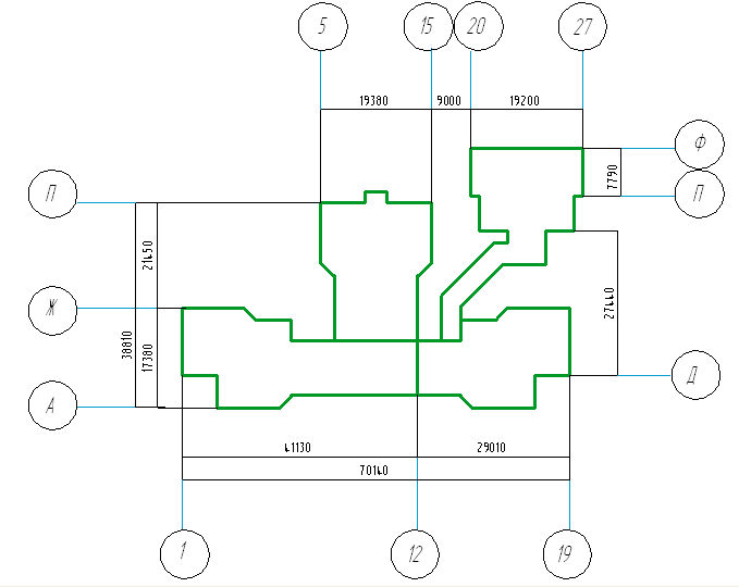 Крыша плоская. Конфигурация здания в плане имеет сложную форму, рисунок 1.