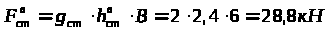 где Sg =1,8 кН/м2 снеговая нагрузка в зависимости от района строительства; μ = 1, Fсн прикладывается так же как и Fп.