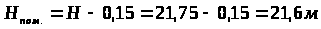 Глубина заделки колонны в стакан фундамента равна наибольшему из 1,5 bк или hн , и получаем отметку (-) (Нзад. + 0,15)=1,2+0,15=1,35.