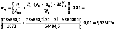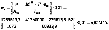 Определяем усилие обжатия в бетоне при обжатии в уровне центра тяжести преднапряженной арматуры: