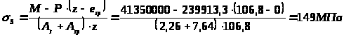 Напряжения в растянутой арматуре ф-ла (147), [1]